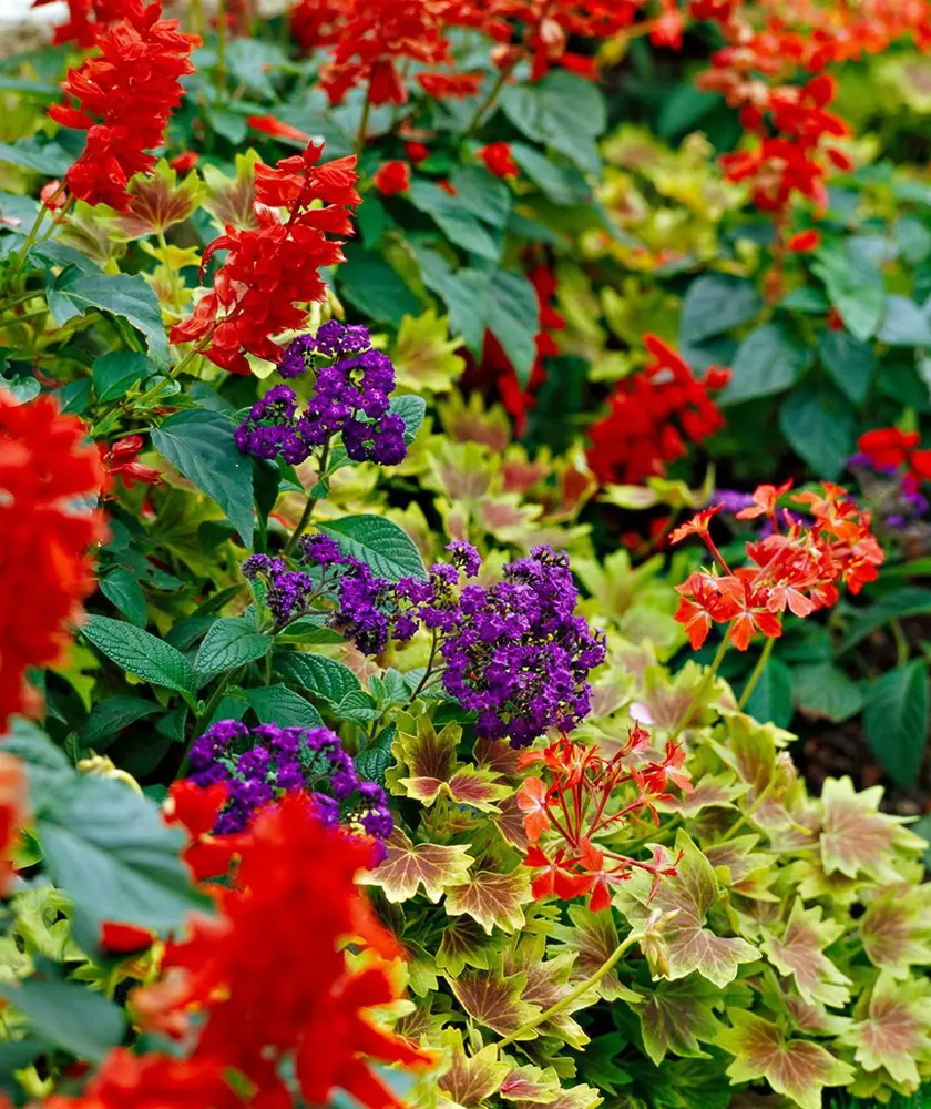 Verbena is known for its clusters of small, vibrant blooms that add a splash of color to gardens. These flowers thrive in full sun and well-drained soil. Verbena is available in a variety of colors, including pink, purple, red, and white, and it blooms continuously from late spring through fall.