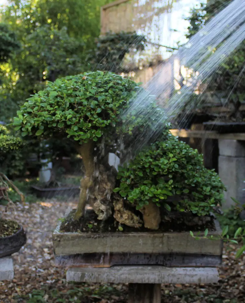 When watering, ensure a thorough soaking of the soil. Water the bonsai until you observe water draining from the bottom of the pot. This ensures that the entire root system receives the necessary moisture.