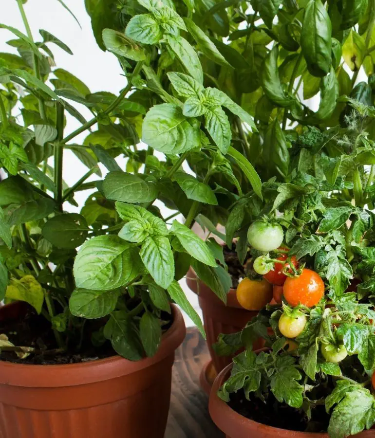 For instance, if you're planting basil with tomatoes, it's best to put the basil in the pot with the tomato seedling or wait until the basil has grown for about 6 weeks before planting them together.