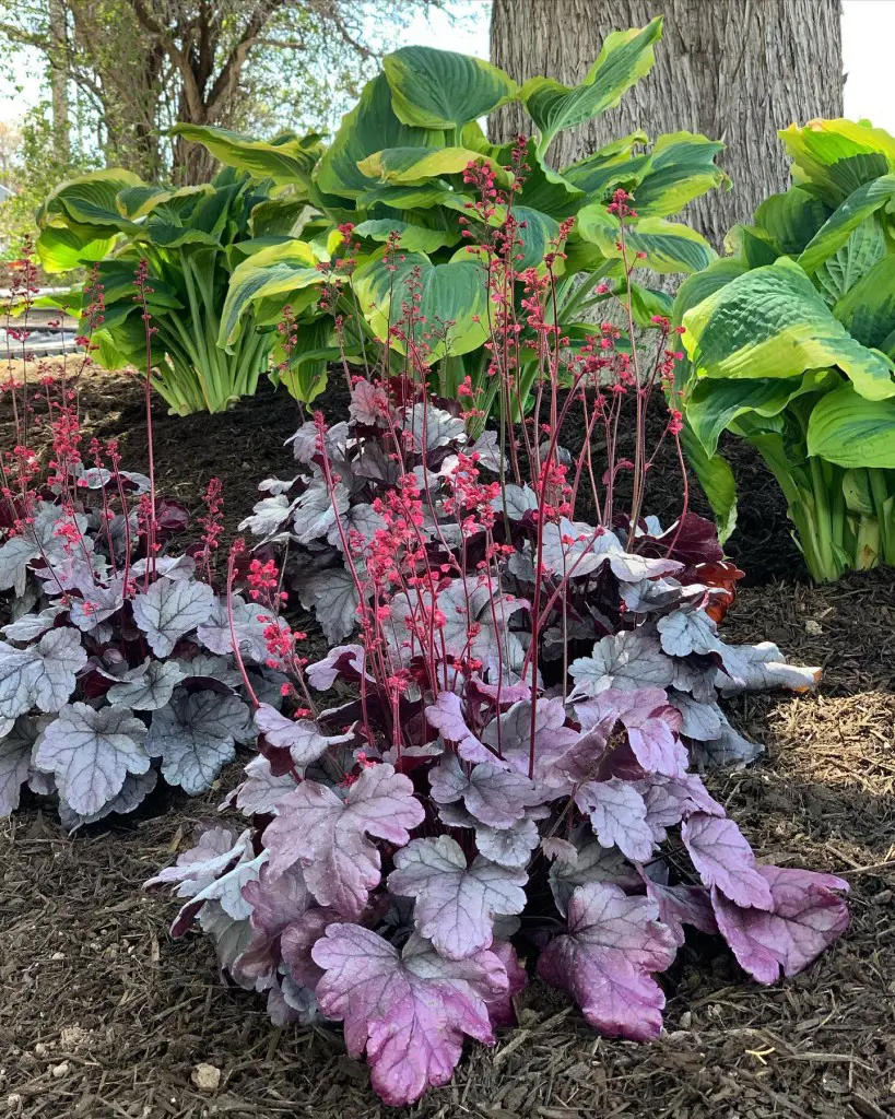 While coral bells can handle sun, they particularly excel in dappled or partial shade conditions found in woodland settings. Planted beneath tall trees or intermingled with ferns and hostas, their colorful leaves provide lovely contrasts in shady spaces.