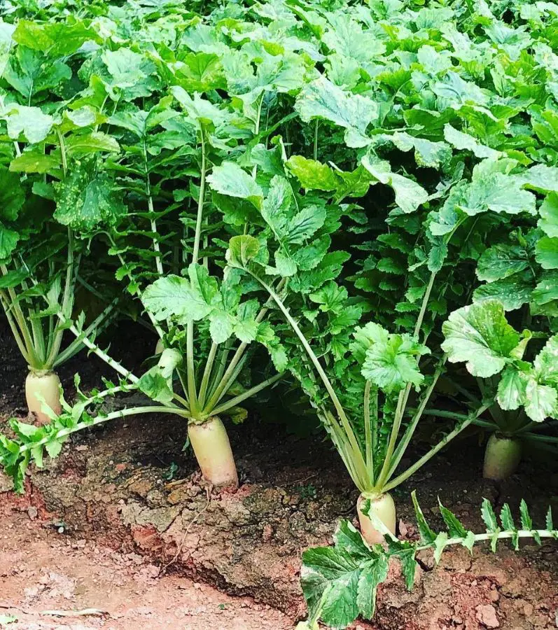 Radish goes well as a companion plant with cucumber. As they grow, their roots help break up compacted soil, improving drainage and aeration. This is beneficial for cucumbers, which prefer well-drained soil to prevent root rot.
