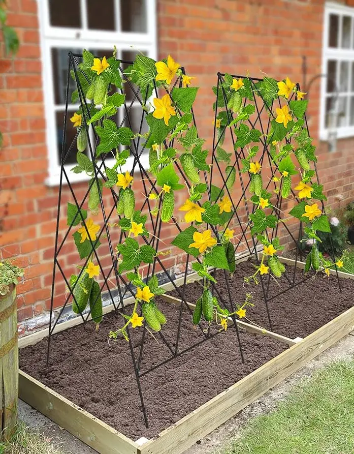 The grid pattern of the grates provides sufficient space for cucumber plants to weave through and climb, while on the other hand, the durable metal construction ensures long-lasting support.