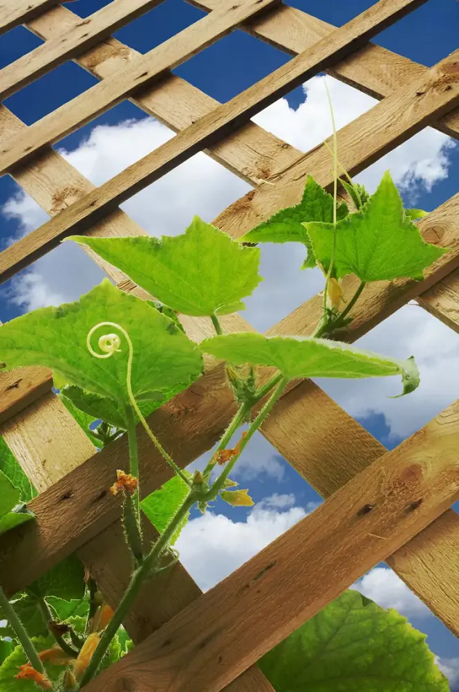 Cucumbers, especially when fruiting, can get surprisingly heavy. Choose a trellis that can support the weight of mature vines and fruits.