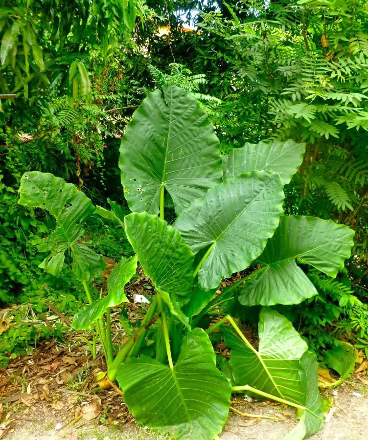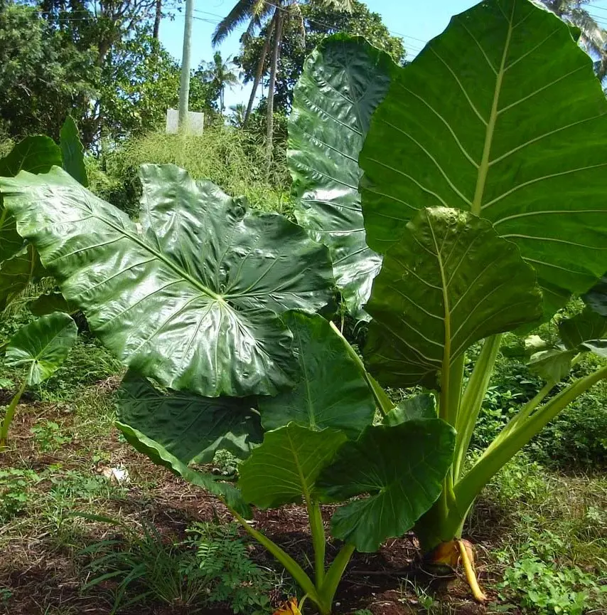 Xanthosoma sagittifolium, commonly referred to as the Arrowleaf Elephant Ear or Malanga, is similar in appearance to Colocasia esculenta but typically has narrower, more arrowhead-shaped leaves. It is cultivated for its edible corms, which are a staple food in many tropical regions.