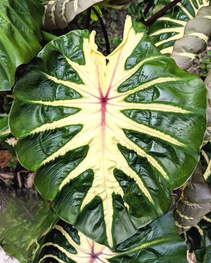 Alocasia elephant ear, commonly known as Giant Taro or Giant Elephant Ear, is characterized by its enormous, arrowhead-shaped leaves and thick, upright stems. The leaves can grow up to several feet in size and have prominent veining.