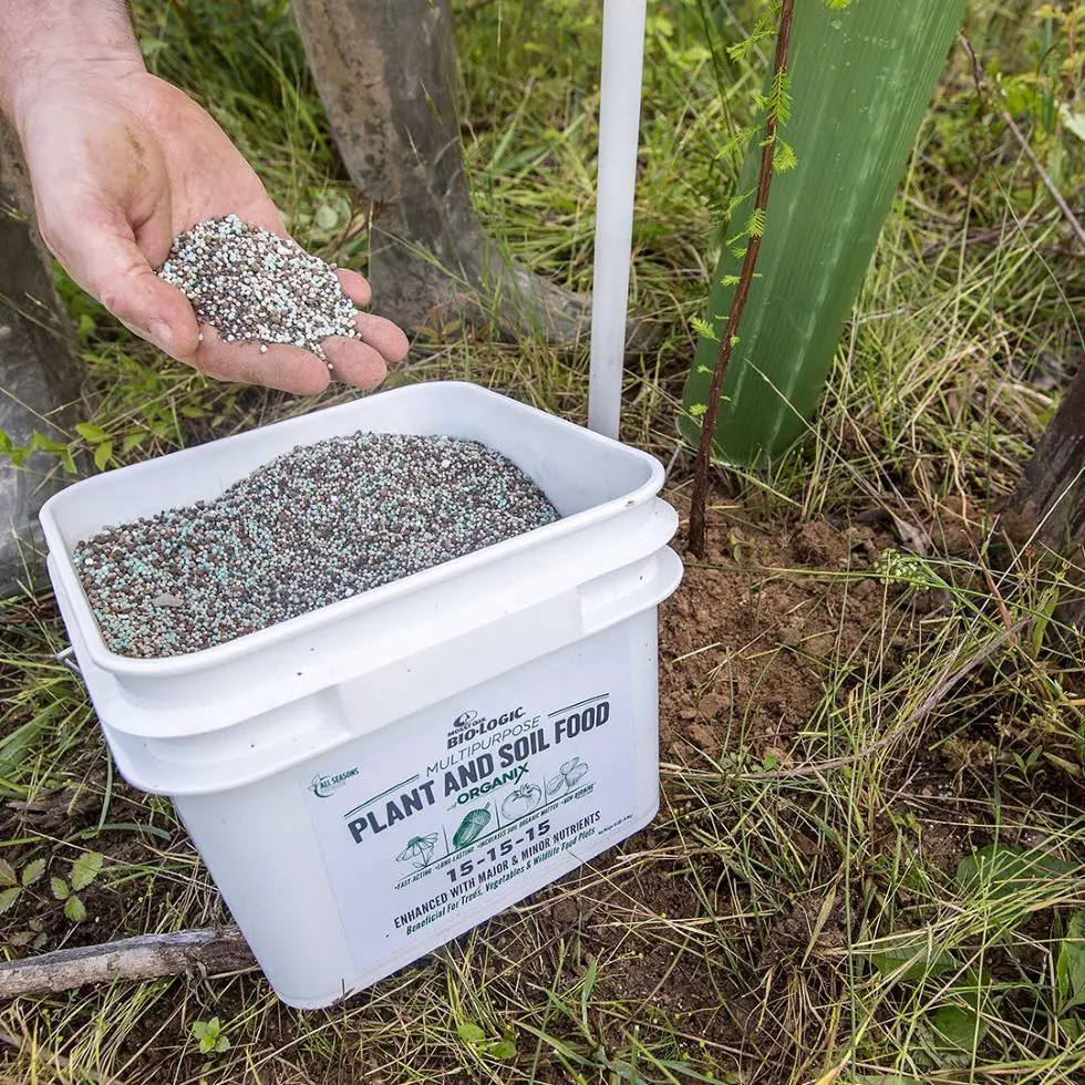 If the time to fertilize fruit trees and flowering plants has arrived, you can go for 10-20-10 fertilizer which has a slightly high phosphorus content for more healthy blossoms and produces.