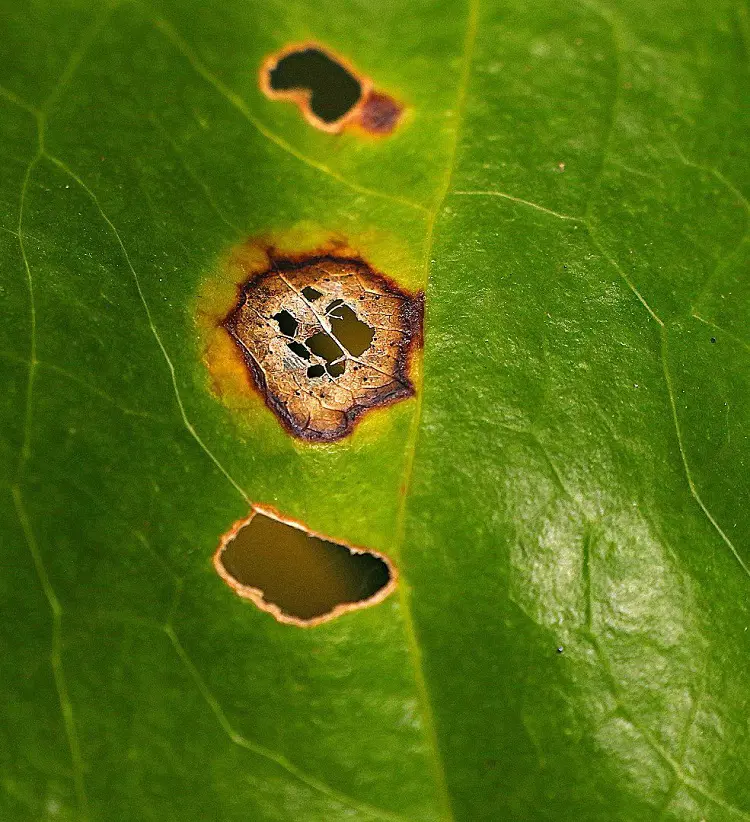 Fiddle Leaf Figs are usually tough, but sometimes they can get tiny bugs like spider mites or scale insects, or even plant diseases. Look out for spots or dark patches on the leaves, or little bugs crawling around.