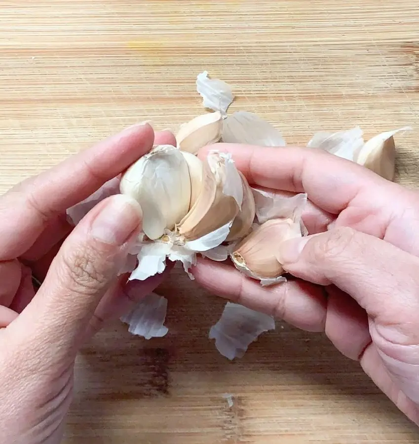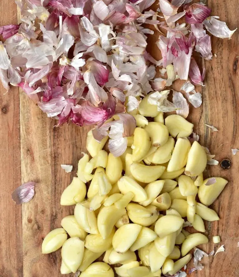 You can also shake the cloves hard between 2 metal bowls to separate the cloves from the skin or microwave the cloves for 10 seconds to loosen the skin. Do note that garlic with skin keeps longer in the fridge. So, if you are not drying all of the garlic, you can keep the skin on and put it in the fridge.