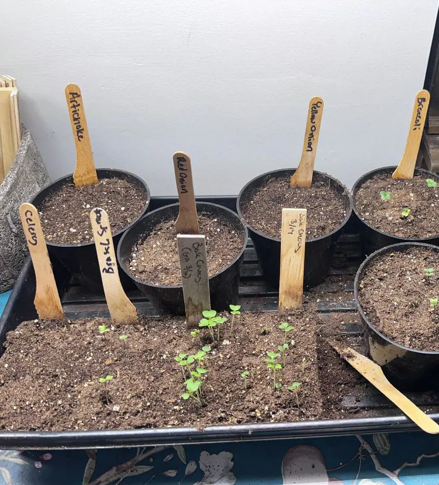 Use seed trays, pots, or even egg cartons with drainage holes. Fill them with moist potting mix, leaving about ½ inch at the top. Things to consider:
