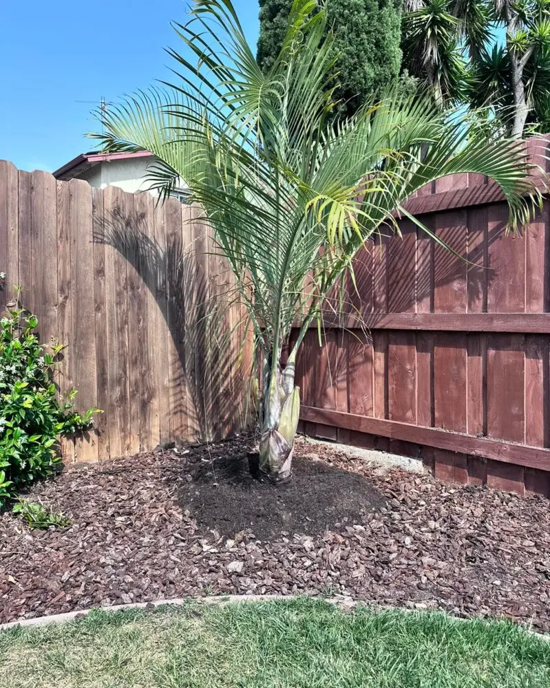 Now water the young palm for the first few days and then limit it to two or three times a week. Then fertilize with balanced NPK to support growth. At last, keep an eye out for the signs of stress and provide care accordingly.