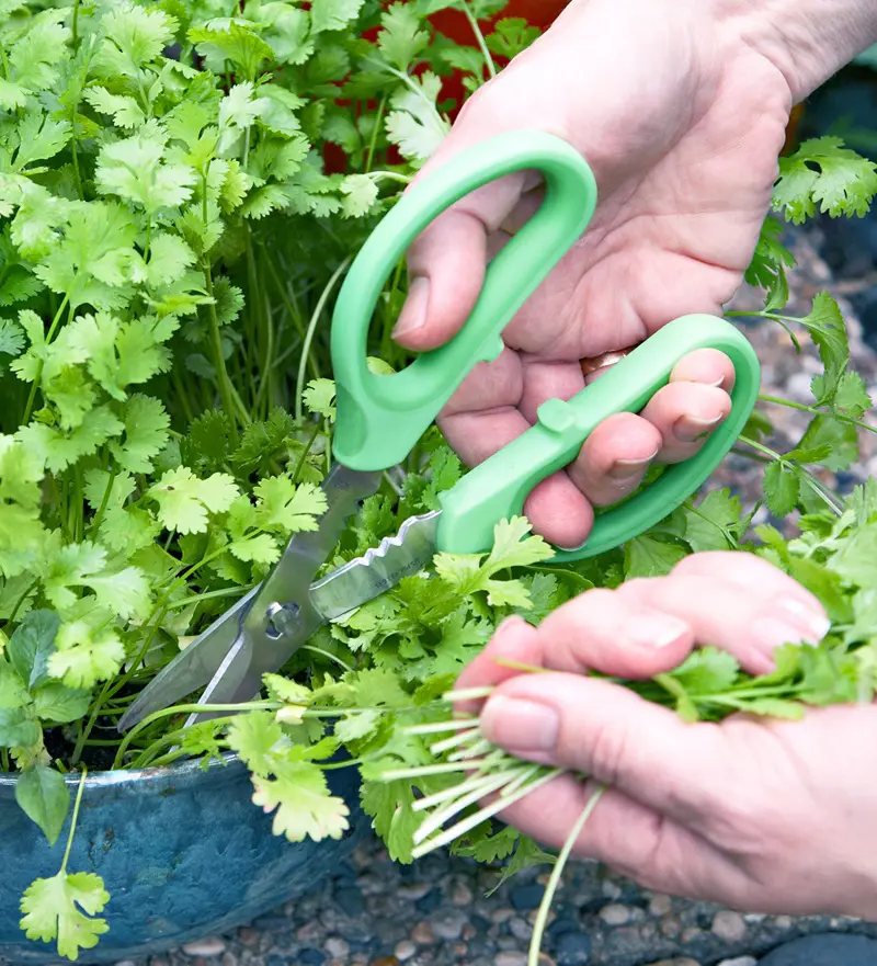 Although your hands are just enough to harvest the delicate leaves of the cilantro, you can still use some of the tools to make your task easy. It has been recommended to use a clean herb or garden shear for the effective trimming of the cilantro leaves.