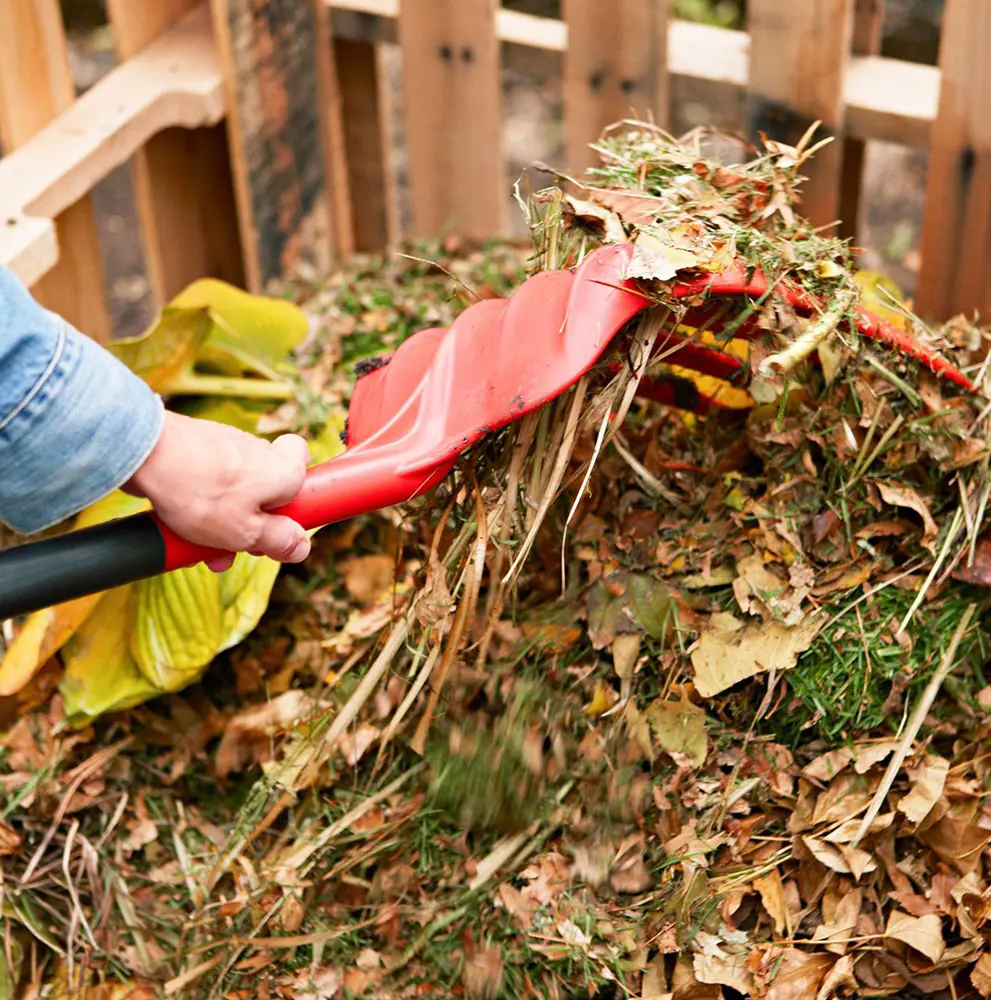 - Turn the compost pile regularly with a pitchfork or shovel to introduce oxygen, which speeds up decomposition and prevents odors.