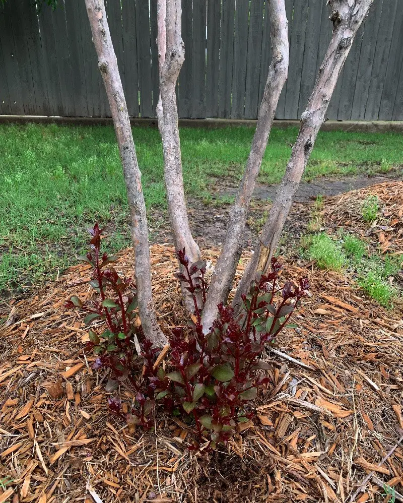 Placement: Spread the mulch around the base of the crepe myrtle, extending out to the drip line (the area directly beneath the outermost branches). Avoid piling mulch directly against the trunk, as this can lead to moisture buildup and potential trunk rot.