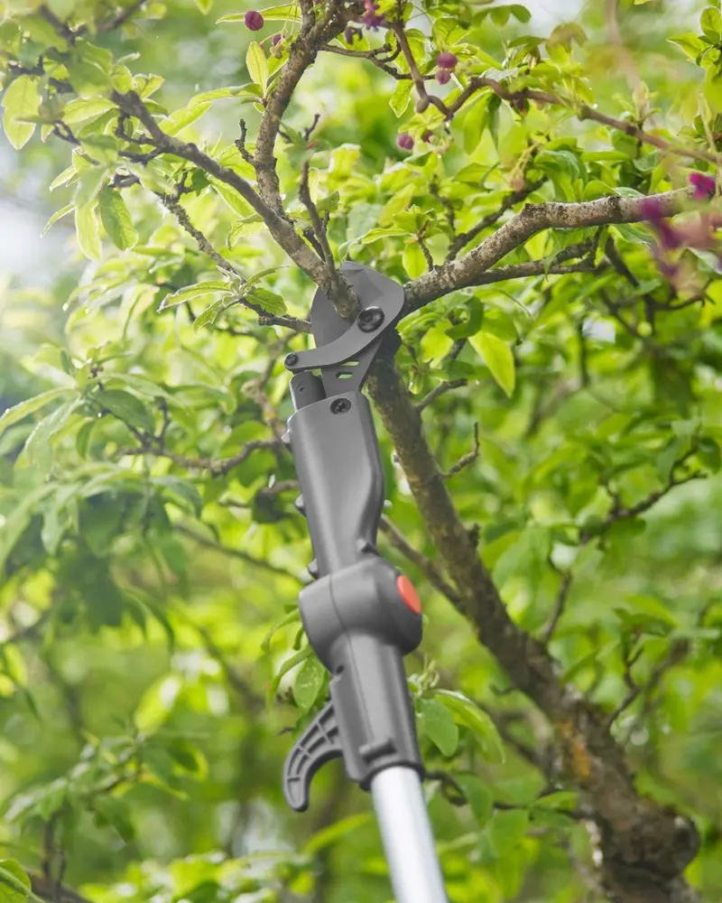 Long-reach pruners: These are best known for pruning tall trees and big shrubs having woody branches of about 3cm thick.