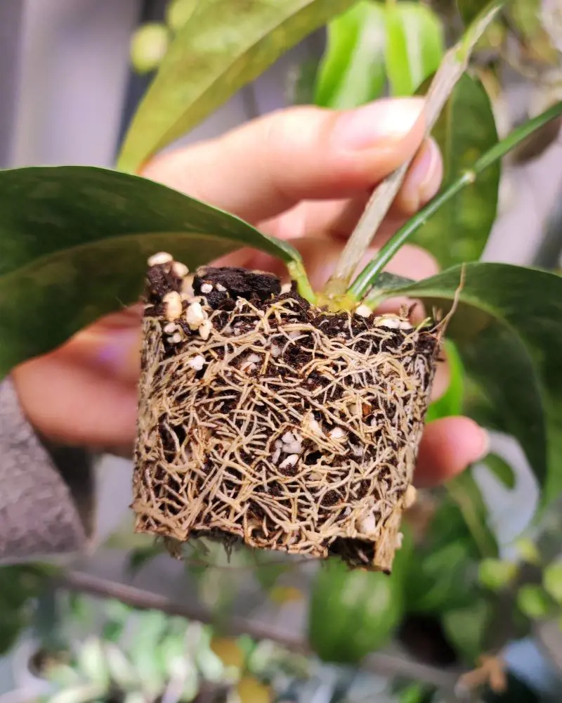 Roots: Hoya plants have roots that anchor them in the soil and absorb water and nutrients. These roots may develop aerial roots as well, which help the plant cling to supports such as trees or trellises.