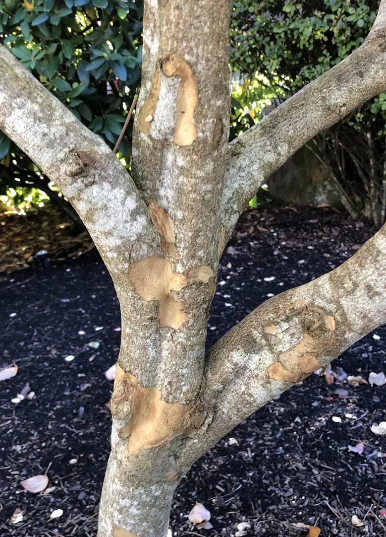 The bark of Lagerstroemia peels in a vertical strip which reveals the gray or greenish colored inner bark. This peeling of bark gives Lagerstroemia a mottled texture.