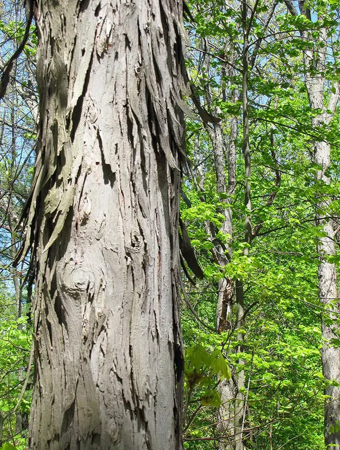 The rough bark of shagbark hickory provides aesthetic beauty and harbors several species of insects, birds, and bats.