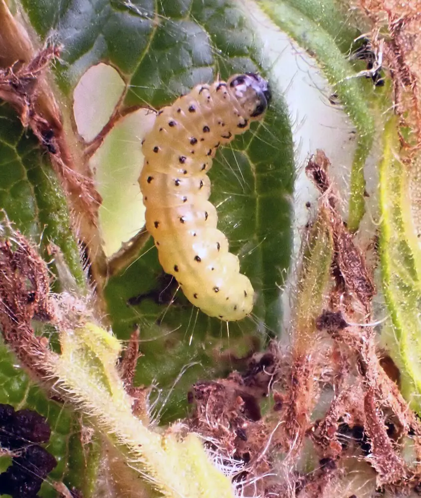 - Identification: Caterpillars that are green, brown, or black with stripes. They are active at night and hide during the day.