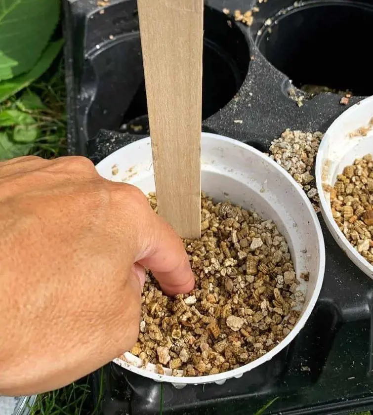 Cover the exposed section with moist potting mix.