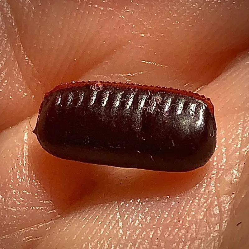 Roach eggs have an external hard, protective covering that protects the enclosed nymphs from environmental and some pesticide insults. This covering, often ridged or segmented, gives a characteristic texture that helps to distinguish the eggs from other small particles.