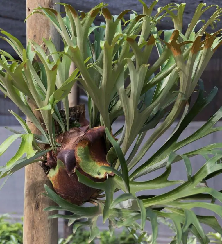 Staghorn ferns do not need pruning, as their shield and antler fronds serve vital functions such as protecting delicate roots and absorbing water and nutrients. Over-pruning can stress this plant, so if shaping is desired, trim lightly, particularly in summer, and use sharp, clean tools.