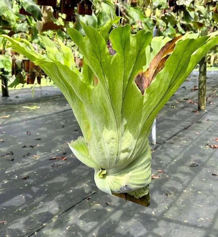 This fern is the largest of all the staghorn ferns, with fronds that can grow up to 6 feet long and 3 feet wide. The sterile fronds are massive and can be up to 2 feet wide. These ferns are native to Australia and Indonesia.