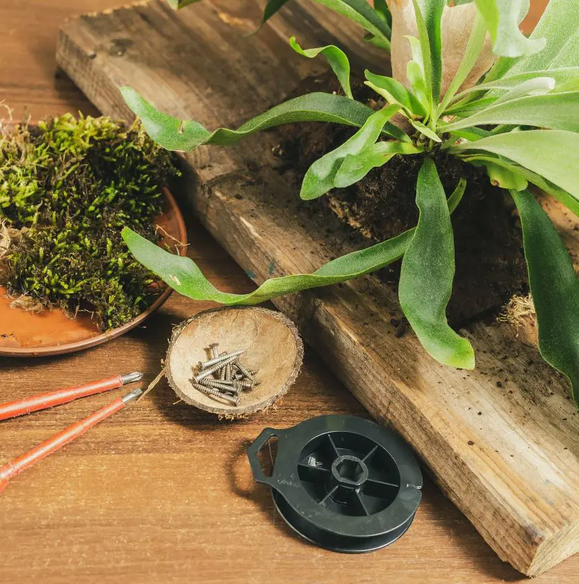 Sterilize a sharp knife or pruning shears with alcohol. Gather sphagnum moss, a mounting board, and string or wire for attaching.